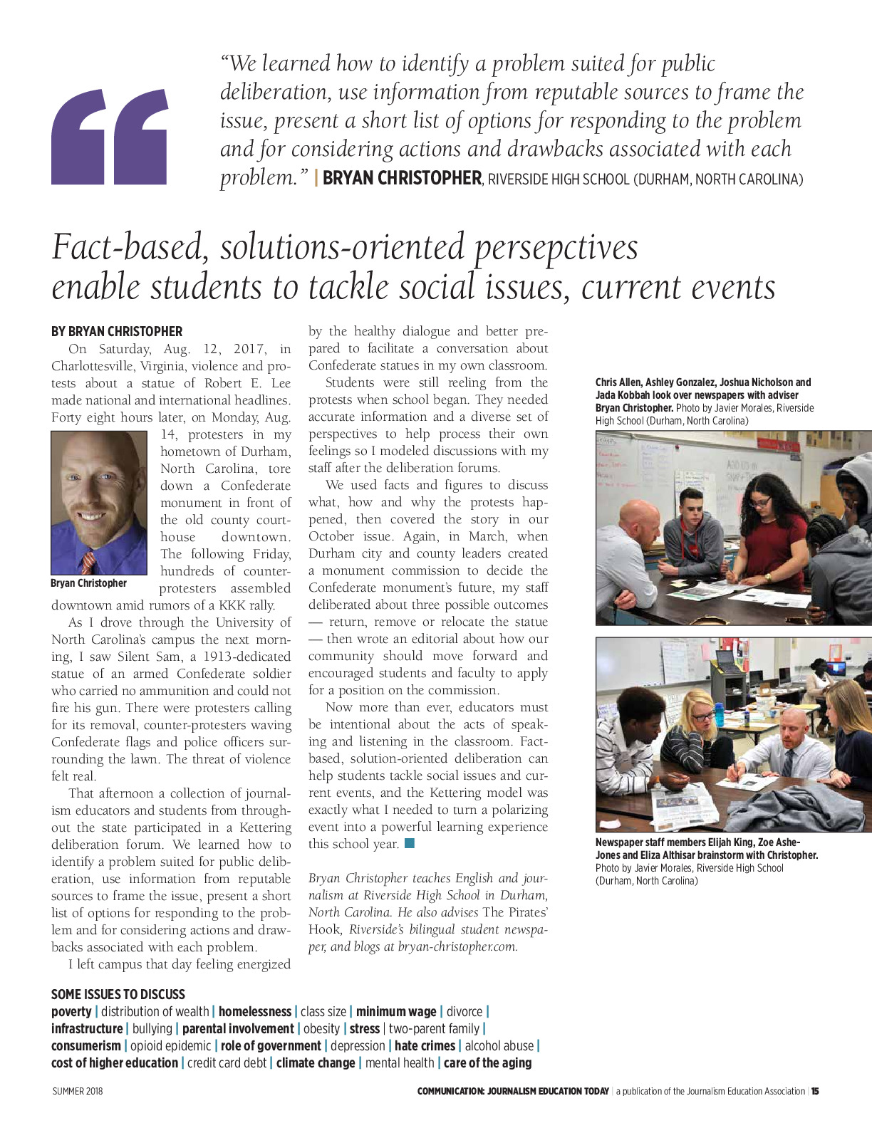 Fact-based, solutions-oriented perspectives enable students to tackle societal issues, current events, Communication: Journalism Education Today